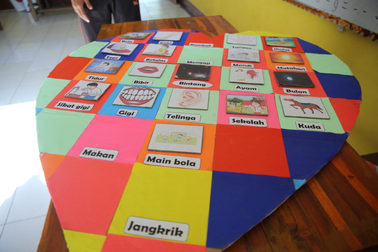 “By using this learning aid, I am not only training or teaching children about the concept and meaning of words but also boosting their self-confidence to come to the front of the class. From there, I can see which students already understand the concept and meaning of words and which students still need help,” explained Sunardin ending his story.