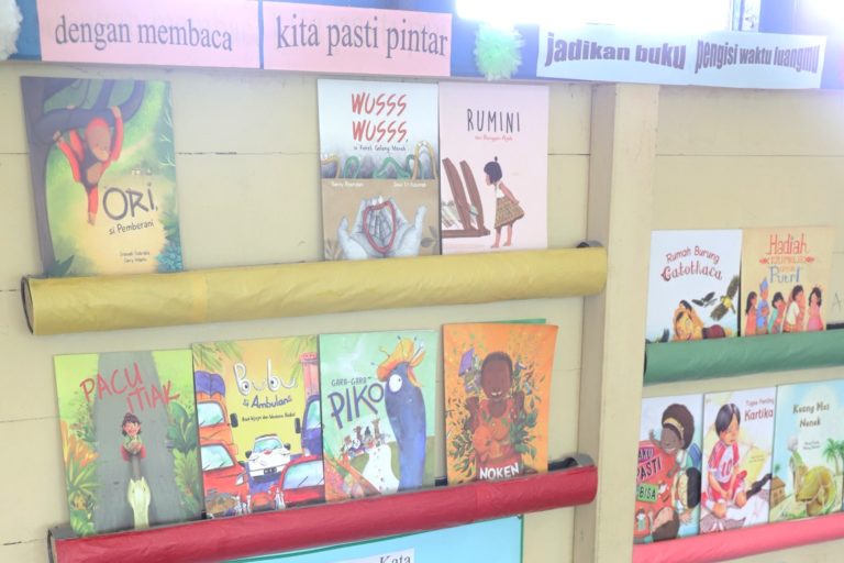 Every classroom now has a reading corner. Abdurahman and the homeroom teacher also work together: the school provides the books, and the homeroom teacher arrange the way they’re displayed. Sometimes the teachers themselves are creative in arranging the bookshelf so that it looks more attractive.