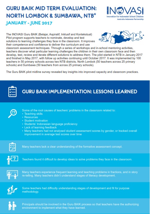 The Guru BAIK pilot midline survey shows key insights into improved capacity and classroom practices in Sumbawa and North Lombok districts in NTB.