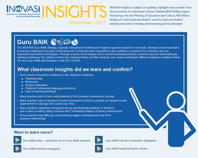 INOVASI Insight is a digest of updates, highlights, and content from the Innovation for Indonesia’s School Children (INOVASI) program. Partnering with the Ministry of Education and Culture, INOVASI is finding out what does and doesn’t work to improve student learning outcomes in literacy and numeracy across Indonesia.