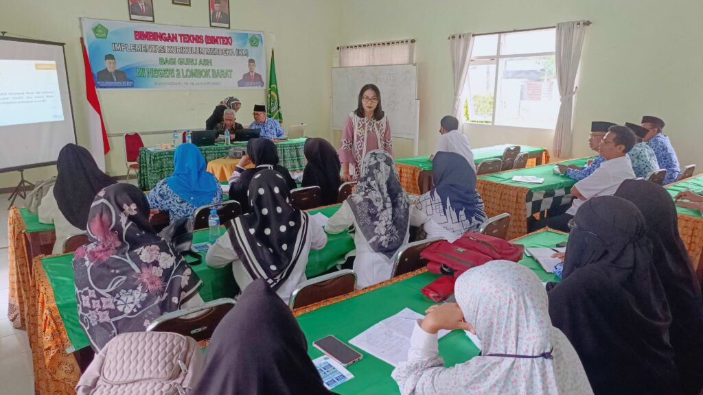 Madrasah Working Group (Kelompok Kerja Madrasah, or KKM) of Madrasah Ibtidaiyah Negeri (MIN) 2 of West Lombok organized a briefing on the Implementation of Kurikulum Merdeka (IKM) for teachers from a number of private madrasah under its auspices. This briefing was aimed for madrasah teachers and principals to have sufficient knowledge about Kurikulum Merdeka and to be able to apply its principles in learning in the classroom. There were around 60 madrasah teachers and principals who were trained in the activity which took place at the West Lombok District SKB Building. It is planned that the training would last for four days and be interspersed with the application of the initial material given.