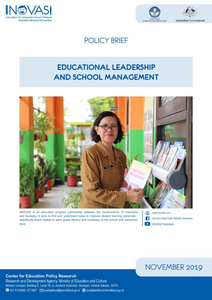 Risalah Kebijakan edisi Oktober 2019 ini mengeksplorasi isu-isu utama dan rekomendasi kebijakan tentang kepemimpinan sekolah yang berpihak pada mutu kegiatan pembelajaran berdasarkan hasil pelaksanaan program INOVASI di Provinsi Nusa Tenggara Barat, Nusa Tenggara Timur, Kalimantan Utara, dan Jawa Timur. Risalah Kebijakan ini akan diperbaharui pada akhir tahun 2019 dengan mengikutsertakan hasil studi endline pelaksanaan program.