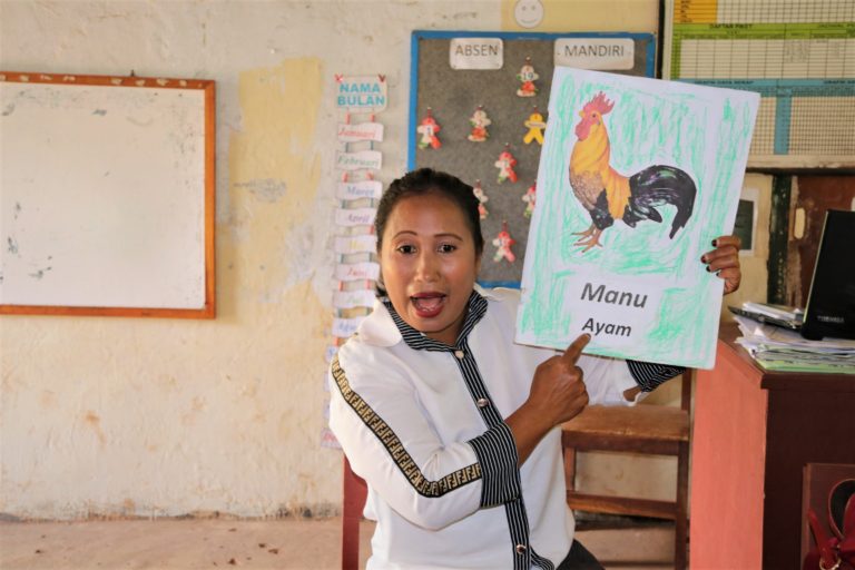 Apli and her fellow teachers developed stories that touch on the daily lives of the children in Sumba, such as family, traditional clothing, traditional houses, and local varieties of fruit, all of which are related to the conditions and culture in Sumba, especially West Sumba. The collaboration between Apli and the other teachers resulted in at least 20 units of Big Books that contain different stories and are specific to the level at which each one is being used.
