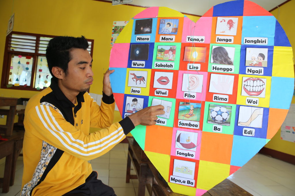 “By using this learning aid, I am not only training or teaching children about the concept and meaning of words but also boosting their self-confidence to come to the front of the class. From there, I can see which students already understand the concept and meaning of words and which students still need help,” explained Sunardin ending his story.
