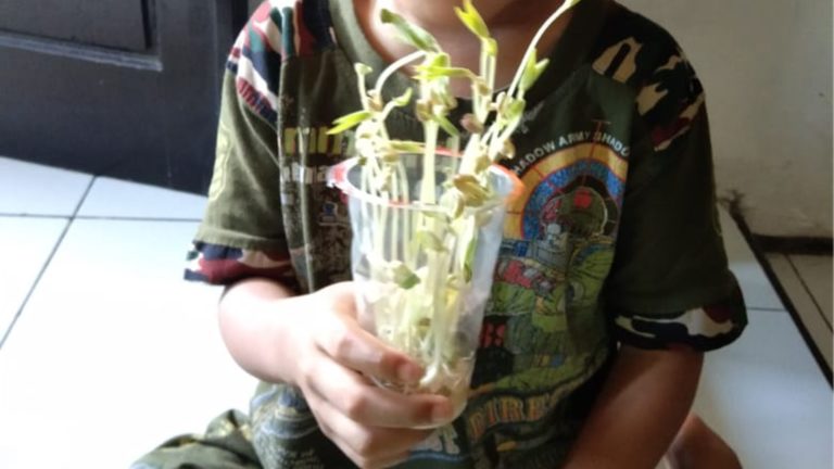 Meanwhile, to teach her students to be able to understand how a plant grows, Ms. Nia asks the children to put soybean seeds in an empty glass that is lined with wet cotton. Children are asked to observe and report the growth of soybean seeds, from day one to day seven.