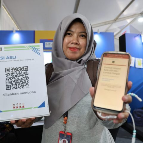Ibu Nining, seorang guru kelas satu yang berdedikasi dari Cirebon, yang mendampingi 47 siswanya saat mereka mengambil langkah pertama dalam belajar membaca © Junaedi Uko/INOVASI 2025