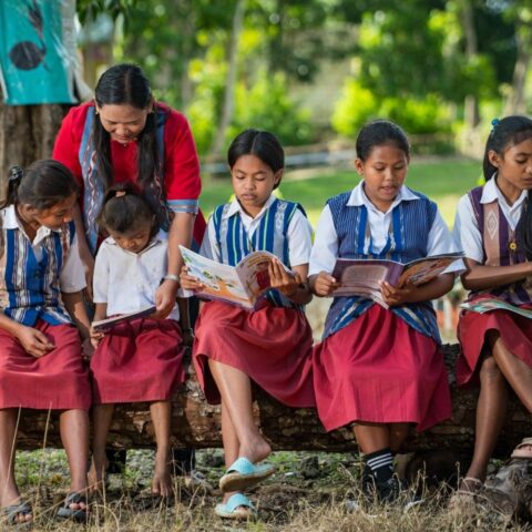 Di sebuah desa terpencil di Sumba, Selvita Triyonani, seorang kepala sekolah, menapaki jalan berlumpur untuk mengetuk pintu demi membuka pikiran – memastikan setiap anak, termasuk anak dengan disabilitas, mendapat kesempatan untuk belajar dan berkembang. Foto: © Feri Latief/INOVASI 2025