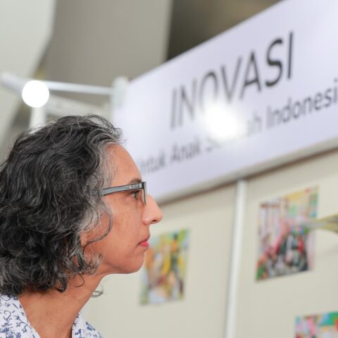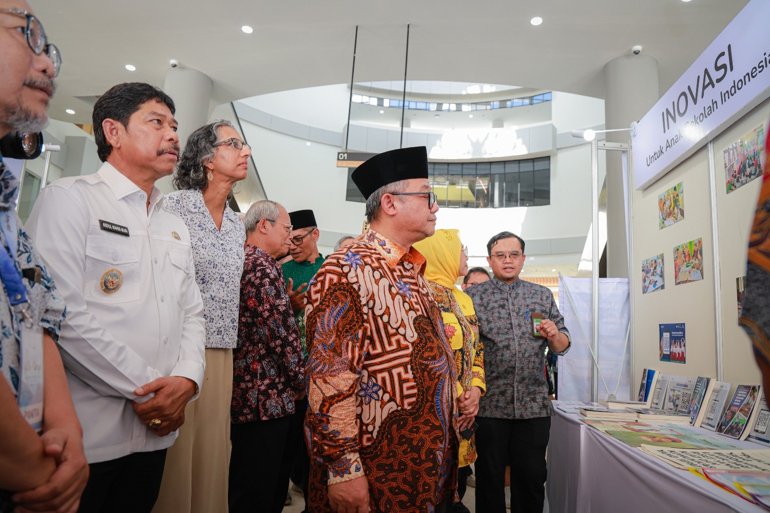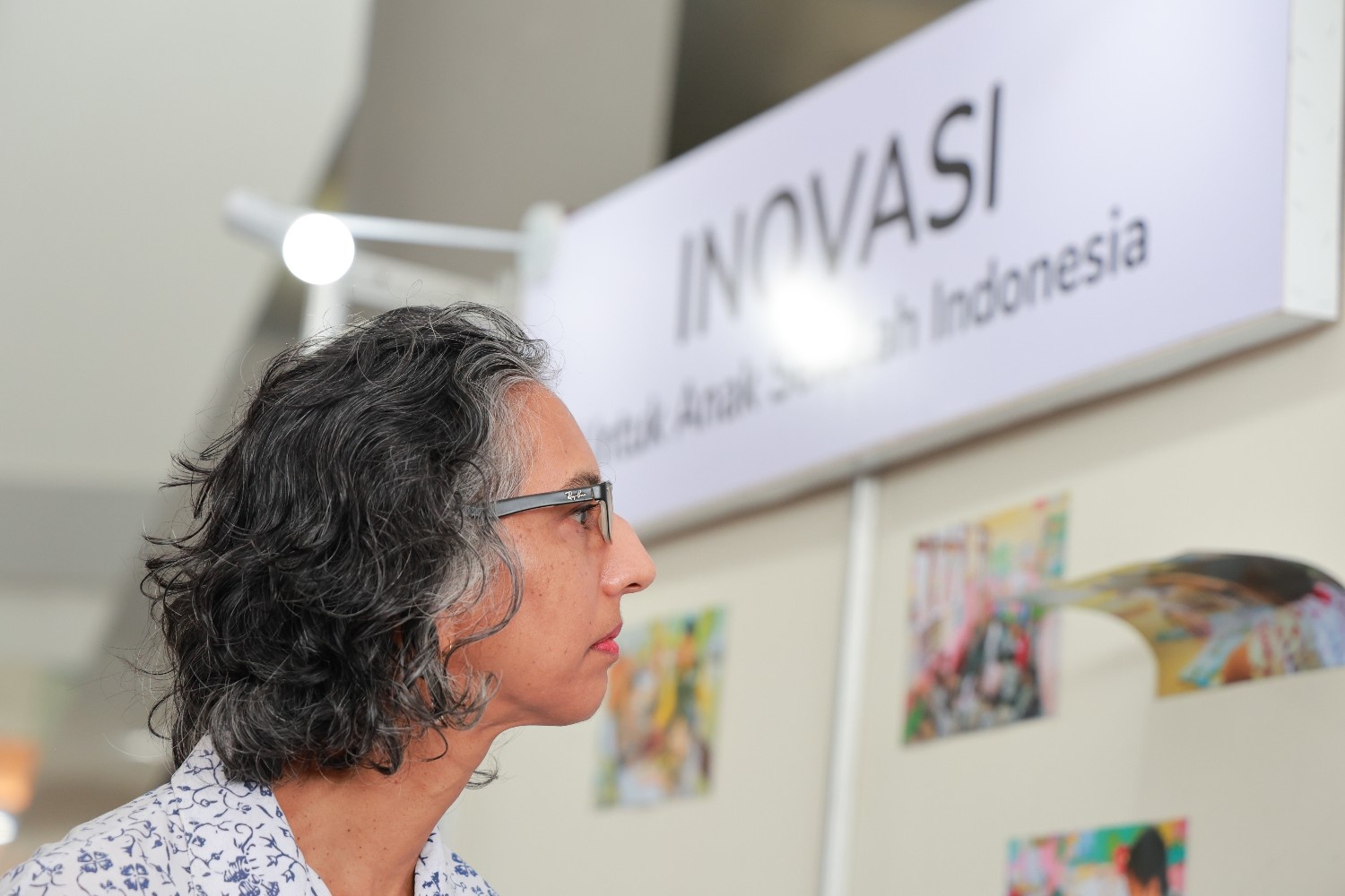 Wakil Dubes, Gita Kamath, mengunjungi booth INOVASI pada acara Gelar Karya di kantor OIKN. Sejak 2024, INOVASI telah kolaborasi dengan OIKN dalam mendukung peningkatan mutu 122 sekolah dasar yang ada di sekitar kawasan OIKN, melalui pelatihan guru, penyediaan buku, dan penyebarluasan praktik baik dalam literasi, numerasi, dan penguatan karakter.
