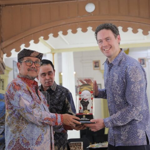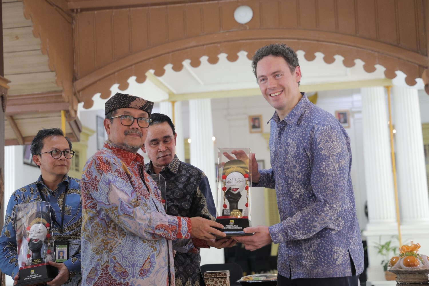Tim Stapleton, Minister Counsellor Tata Kelola dan Pembangunan Manusia dari Kedutaan Besar Australia bersama Bupati Cirebon, H. Imron. Bupati menegaskan bahwa Pemkab Cirebon akan memanfaatkan pengetahuan, keterampilan, dan pengalaman yang telah terbangun di ekosistem pendidikan daerah melalui dukungan program INOVASI untuk memajukan kualitas pendidikan di sana.