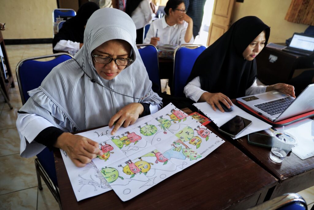 Pelatihan ilustrasi dan penulisan bahan bacaan anak ini berlangsung di Pusat Belajar Guru (PBG) Kabupaten Lombok Barat pada hari Selasa-Rabu (26-27 September 2023). Ada 48 guru yang turut berpartisipasi. Mereka berasal dari tiga sekolah, yaitu SDN