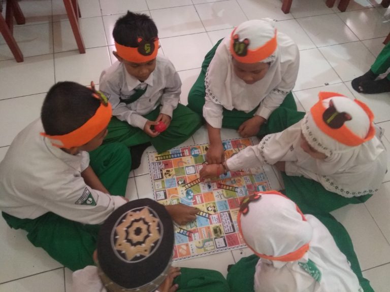 Permainan ular tangga yang berisikan 100 soal numerasi ini memiliki daya tarik sendiri bagi siswa-siswanya yang duduk di kelas 1.