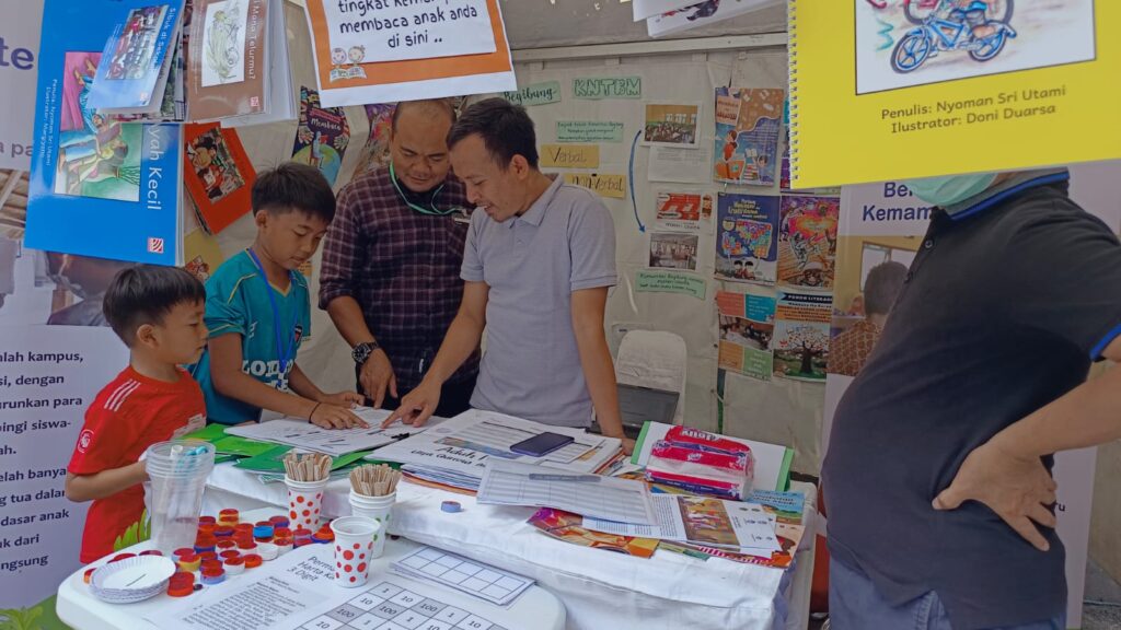 Di stan pameran INOVASI, para pengunjung juga bisa melakukan tes kemampuan membaca anak dengan menggunakan instrumen yang selama ini telah digunakan di sekolah, madrasah dan komunitas literasi. Melalui pengukuran ini, orang tua bisa mengetahui tingkat kemampuan membaca anaknya. Usai melakukan pengukuran, anak akan mendapatkan ‘hadiah’ berupa buku bacaan yang sesuai dengan tingkat kemampuannya tersebut.
