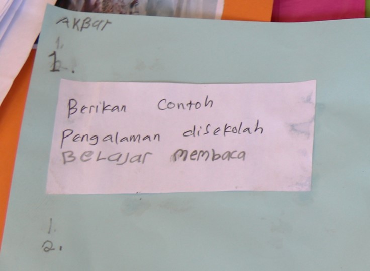 “Setelah membacakan pertanyaan yang mereka temukan, siswa pun dapat langsung menjawab lalu disambung dengan kegiatan menuliskan jawabannya dalam selembar kertas,” cerita Mahmudah.