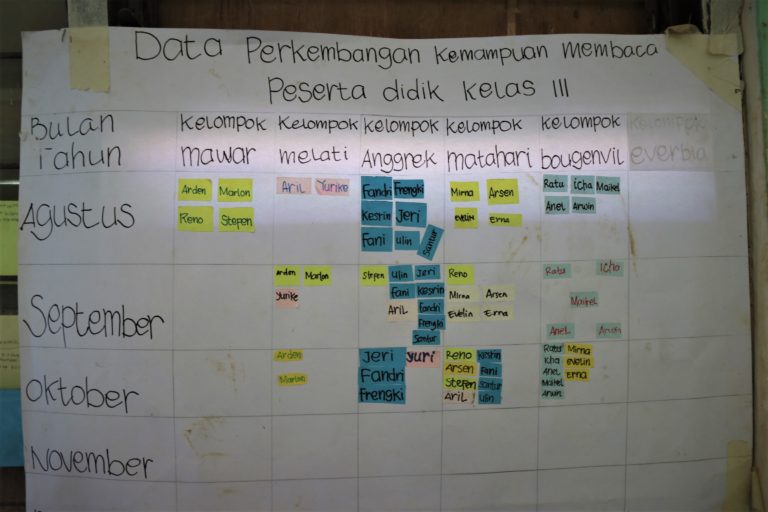 Temuan tersebut ia peroleh setelah mengadakan tes formatif dengan memanfaatkan instrumen yang dikembangkan oleh INOVASI, sebuah program kemitraan pemerintah Indonesia dan Australia. Hasil tes tersebut menunjukkan bahwa ada empat siswa yang masih berada pada tingkat kemampuan membaca huruf.