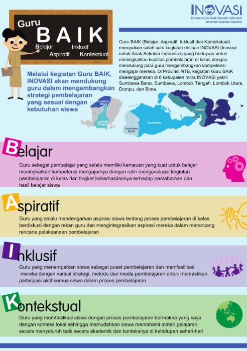 Sebagai program rintisan INOVASI yang pertama, Guru BAIK diimplementasikan di Provinsi NTB di paruh pertama 2016. Ketahui lebih lanjut tentang pendekatan dan bentuk implementasi dari program rintisan ini.