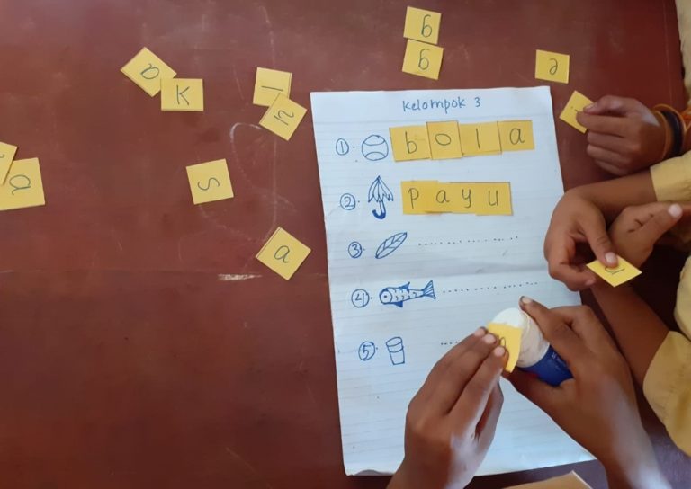 Tidak hanya itu, penggunaan media tersebut ternyata membantu siswa untuk mengenal huruf dan kata dengan cepat. ‘Tembok kata’ misalnya. Setiap kata yang ada di tembok kata dilengkapi dengan ilustrasi yang sesuai sehingga memudahkan siswa untuk mengenal kata atau huruf tertentu. Huruf A, misalnya, diperkenalkan melalui kata Ayam dan disertai dengan gambar ayam. Pemilihan kata dan ilustrasi yang digunakan bertujuan untuk memudahkan siswa menghubungkan apa yang dipelajarinya dengan kehidupan sehari-hari.