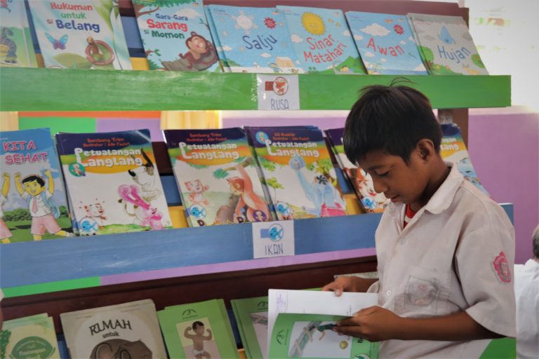 Melalui program kolaborasi ini, Taman Bacaan Pelangi menyediakan buku cerita anak berkualitas untuk anak-anak akan baca di perpustakaan dan pinjam ke rumah. Selain itu, Taman Bacaan Pelangi juga memberikan pelatihan pengembangan kapasitas guru melalui pelatihan ‘Manajemen Perpustakaan Ramah Anak’ dan ‘Kegiatan Membaca di Perpustakaan’.