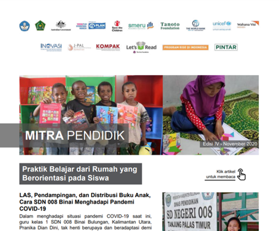 Buletin ini merupakan kolaborasi berbagai lembaga pembangunan mitra pemerintah dalam membagikan cerita praktik baik, hasil survei dan informasi terkait hal-hal yang dapat mendukung maupun yang menghambat proses pembelajaran, termasuk upaya-upaya yang dilakukan dalam mendukung kegiatan pembelajaran di masa pandemi Covid-19. Edisi kali ini terdiri dari cerita inspiratif praktik belajar dari rumah (BDR), tips pembelajaran di masa pandemi, berbagai bentuk kolaborasi untuk meningkatkan hasil belajar siswa, serta hasil penelitian dan panduan terbaru.