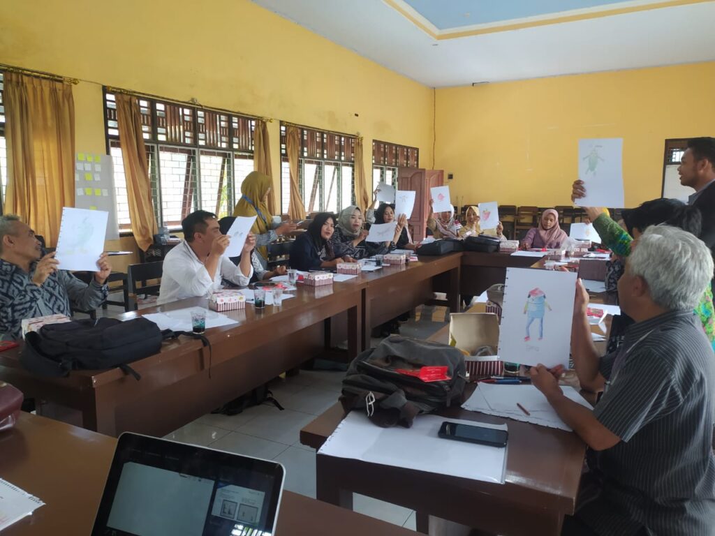 Belasan guru dan pengawas sekolah di kecamatan Pujut, Lombok Tengah (Loteng) dilatih untuk membuat cerita ilustrasi dan narasi bahan bacaan anak berbasis cerita lokal, Selasa (28/2/2023). Pelatihan ini adalah upaya untuk menyikapi masih minimnya bahan bacaan untuk mendukung pembelajaran anak di kelas , khususnya yang berbasis lokal. Kegiatan yang dilaksanakan di kantor UPTD Dinas Pendidikan kecamatan Pujut tersebut merupakan kolaborasi antara dinas pendidikan Kab. Loteng, Universitas Mataram (UNRAM), dan Konsorsium NTB Membaca (KNTBM) dengan dukungan INOVASI.